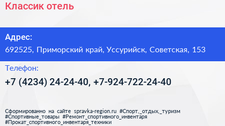 Классик, отель по адресу 692525, Приморский край, Уссурийск, Советская, 153 в дальнейшем Организация, размещена в следующих категориях: