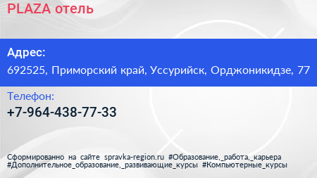 PLAZA, отель по адресу 692525, Приморский край, Уссурийск, Орджоникидзе, 77 в дальнейшем Организация, размещена в следующих категориях: