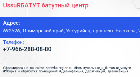 UssuRБАТУТ, батутный центр по адресу 692526, Приморский край, Уссурийск, проспект Блюхера, 2 в дальнейшем Организация, размещена в следующих категориях: