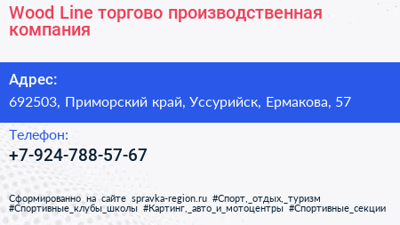 Wood Line, торгово-производственная компания по адресу 692503, Приморский край, Уссурийск, Ермакова, 57 в дальнейшем Организация, размещена в следующих категориях:
