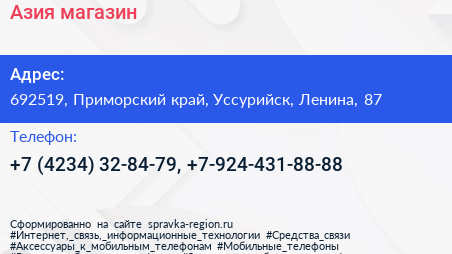 Азия, магазин по адресу 692519, Приморский край, Уссурийск, Ленина, 87 в дальнейшем Организация, размещена в следующих категориях: