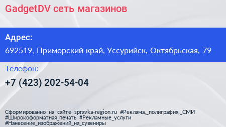 GadgetDV, сеть магазинов по адресу 692519, Приморский край, Уссурийск, Октябрьская, 79 в дальнейшем Организация, размещена в следующих категориях: