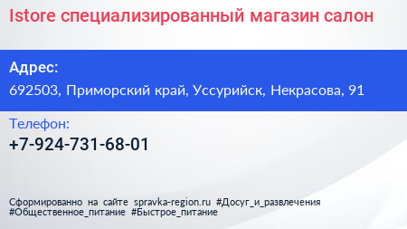 Istore, специализированный магазин-салон по адресу 692503, Приморский край, Уссурийск, Некрасова, 91 в дальнейшем Организация, размещена в следующих категориях: