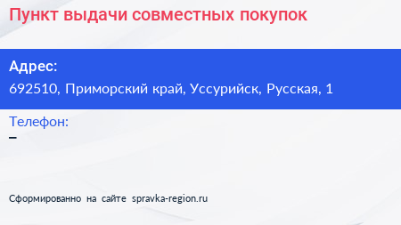 Пункт выдачи совместных покупок по адресу 692510, Приморский край, Уссурийск, Русская, 1 в дальнейшем Организация, размещена в следующих категориях: