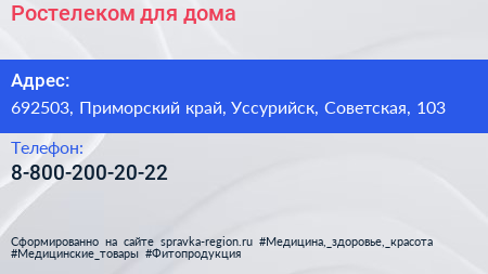 Ростелеком для дома по адресу 692503, Приморский край, Уссурийск, Советская, 103 в дальнейшем Организация, размещена в следующих категориях: