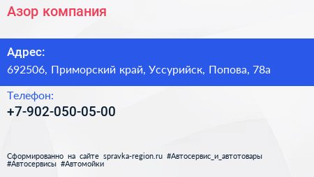 Азор, компания по адресу 692506, Приморский край, Уссурийск, Попова, 78а в дальнейшем Организация, размещена в следующих категориях: