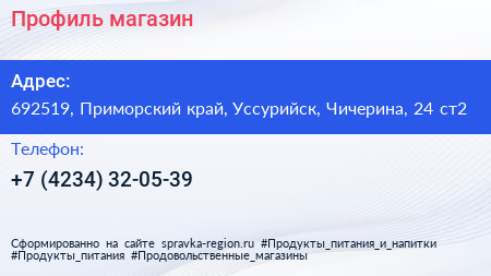 Профиль, магазин по адресу 692519, Приморский край, Уссурийск, Чичерина, 24 ст2 в дальнейшем Организация, размещена в следующих категориях: