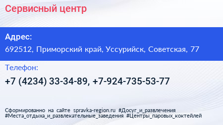 Сервисный центр по адресу 692512, Приморский край, Уссурийск, Советская, 77 в дальнейшем Организация, размещена в следующих категориях: