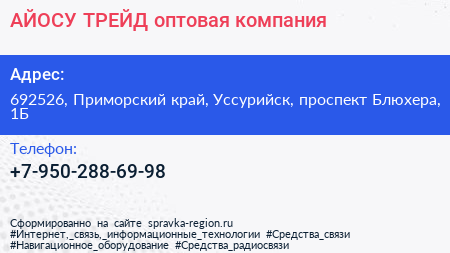 АЙОСУ ТРЕЙД, оптовая компания по адресу 692526, Приморский край, Уссурийск, проспект Блюхера, 1Б в дальнейшем Организация, размещена в следующих категориях: