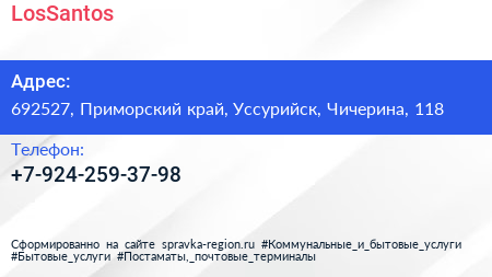 LosSantos по адресу 692527, Приморский край, Уссурийск, Чичерина, 118 в дальнейшем Организация, размещена в следующих категориях: