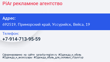PiAr, рекламное агентство по адресу 692519, Приморский край, Уссурийск, Вейса, 19 в дальнейшем Организация, размещена в следующих категориях: