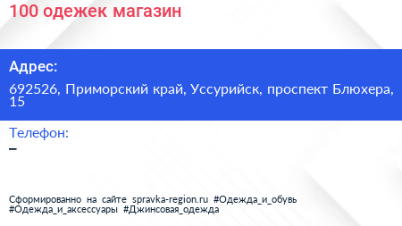 100 одежек, магазин по адресу 692526, Приморский край, Уссурийск, проспект Блюхера, 15 в дальнейшем Организация, размещена в следующих категориях: