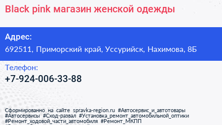 Black pink, магазин женской одежды по адресу 692511, Приморский край, Уссурийск, Нахимова, 8Б в дальнейшем Организация, размещена в следующих категориях:
