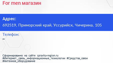 For men, магазин по адресу 692519, Приморский край, Уссурийск, Чичерина, 105 в дальнейшем Организация, размещена в следующих категориях: