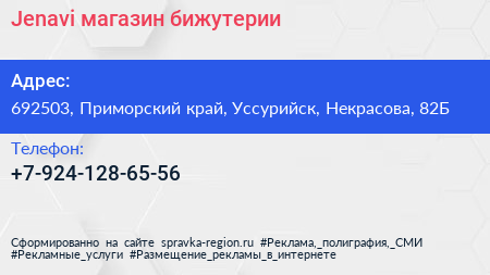 Jenavi, магазин бижутерии по адресу 692503, Приморский край, Уссурийск, Некрасова, 82Б в дальнейшем Организация, размещена в следующих категориях: