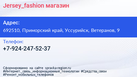 Jersey_fashion, магазин по адресу 692510, Приморский край, Уссурийск, Ветеранов, 9 в дальнейшем Организация, размещена в следующих категориях: