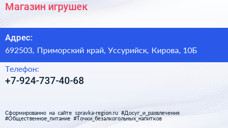 Магазин игрушек по адресу 692503, Приморский край, Уссурийск, Кирова, 10Б в дальнейшем Организация, размещена в следующих категориях: