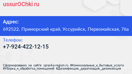 ussurOChki.ru по адресу 692522, Приморский край, Уссурийск, Первомайская, 76а в дальнейшем Организация, размещена в следующих категориях: