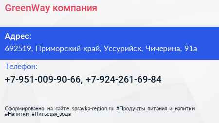 GreenWay, компания по адресу 692519, Приморский край, Уссурийск, Чичерина, 91а в дальнейшем Организация, размещена в следующих категориях: