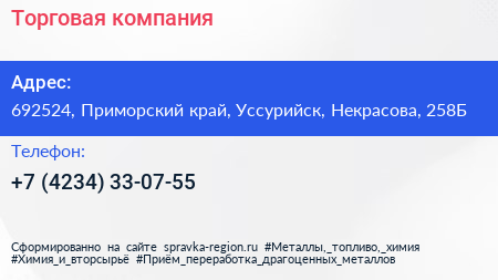 Торговая компания по адресу 692524, Приморский край, Уссурийск, Некрасова, 258Б в дальнейшем Организация, размещена в следующих категориях: