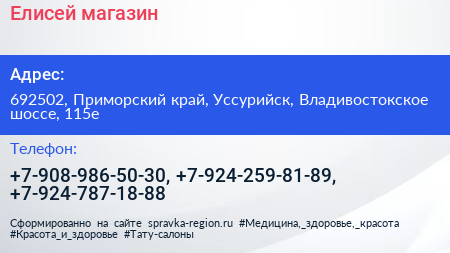 Елисей, магазин по адресу 692502, Приморский край, Уссурийск, Владивостокское шоссе, 115е в дальнейшем Организация, размещена в следующих категориях: