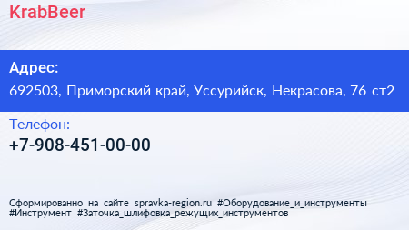 KrabBeer по адресу 692503, Приморский край, Уссурийск, Некрасова, 76 ст2 в дальнейшем Организация, размещена в следующих категориях: