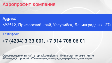 Аэропрофит, компания по адресу 692512, Приморский край, Уссурийск, Ленинградская, 27а в дальнейшем Организация, размещена в следующих категориях: