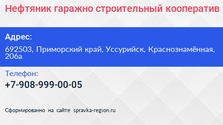 Нефтяник, гаражно-строительный кооператив по адресу 692503, Приморский край, Уссурийск, Краснознамённая, 206а в дальнейшем Организация, размещена в следующих категориях:
