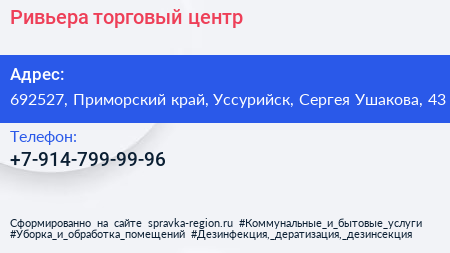 Ривьера, торговый центр по адресу 692527, Приморский край, Уссурийск, Сергея Ушакова, 43 в дальнейшем Организация, размещена в следующих категориях: