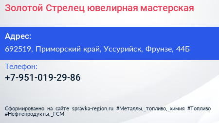 Золотой Стрелец, ювелирная мастерская по адресу 692519, Приморский край, Уссурийск, Фрунзе, 44Б в дальнейшем Организация, размещена в следующих категориях: