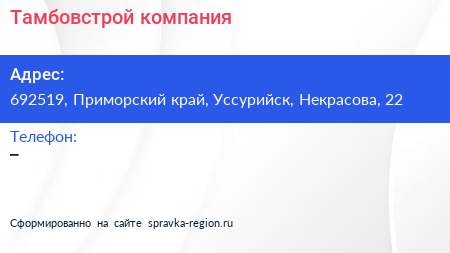 Тамбовстрой, компания по адресу 692519, Приморский край, Уссурийск, Некрасова, 22 в дальнейшем Организация, размещена в следующих категориях: