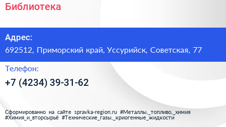 Библиотека по адресу 692512, Приморский край, Уссурийск, Советская, 77 в дальнейшем Организация, размещена в следующих категориях: