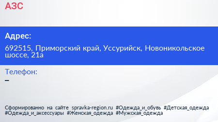 АЗС по адресу 692515, Приморский край, Уссурийск, Новоникольское шоссе, 21а в дальнейшем Организация, размещена в следующих категориях: