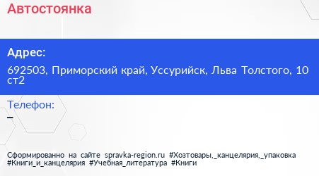 Автостоянка по адресу 692503, Приморский край, Уссурийск, Льва Толстого, 10 ст2 в дальнейшем Организация, размещена в следующих категориях: