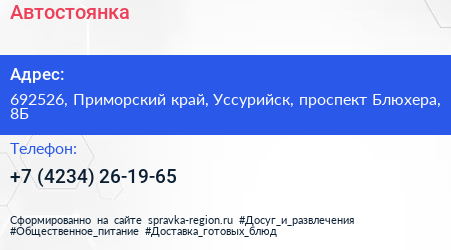 Автостоянка по адресу 692526, Приморский край, Уссурийск, проспект Блюхера, 8Б в дальнейшем Организация, размещена в следующих категориях: