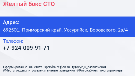 Желтый бокс, СТО по адресу 692501, Приморский край, Уссурийск, Воровского, 2в/4 в дальнейшем Организация, размещена в следующих категориях: