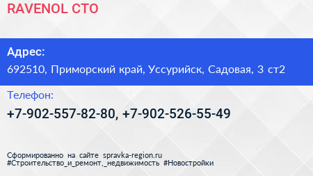 RAVENOL, СТО по адресу 692510, Приморский край, Уссурийск, Садовая, 3 ст2 в дальнейшем Организация, размещена в следующих категориях: