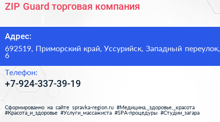 ZIP-Guard, торговая компания по адресу 692519, Приморский край, Уссурийск, Западный переулок, 6 в дальнейшем Организация, размещена в следующих категориях: