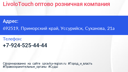 LivoloTouch, оптово-розничная компания по адресу 692519, Приморский край, Уссурийск, Суханова, 21а в дальнейшем Организация, размещена в следующих категориях: