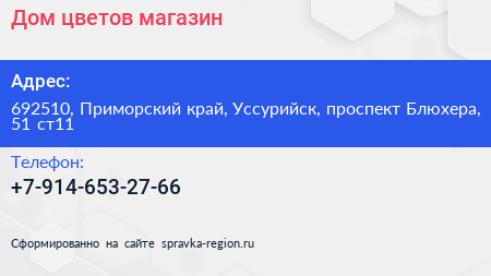 Дом цветов, магазин по адресу 692510, Приморский край, Уссурийск, проспект Блюхера, 51 ст11 в дальнейшем Организация, размещена в следующих категориях: