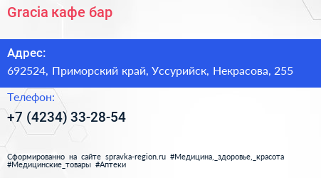 Gracia, кафе-бар по адресу 692524, Приморский край, Уссурийск, Некрасова, 255 в дальнейшем Организация, размещена в следующих категориях: