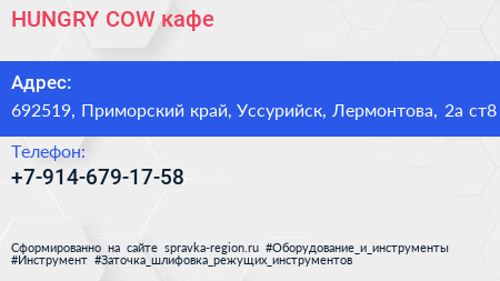 HUNGRY COW, кафе по адресу 692519, Приморский край, Уссурийск, Лермонтова, 2а ст8 в дальнейшем Организация, размещена в следующих категориях: