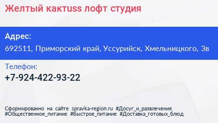 Желтый кактuss, лофт-студия по адресу 692511, Приморский край, Уссурийск, Хмельницкого, 3в в дальнейшем Организация, размещена в следующих категориях: