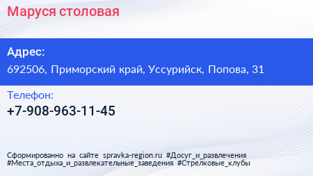 Маруся, столовая по адресу 692506, Приморский край, Уссурийск, Попова, 31 в дальнейшем Организация, размещена в следующих категориях: