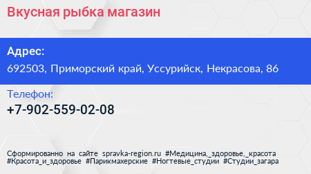 Вкусная рыбка, магазин по адресу 692503, Приморский край, Уссурийск, Некрасова, 86 в дальнейшем Организация, размещена в следующих категориях: