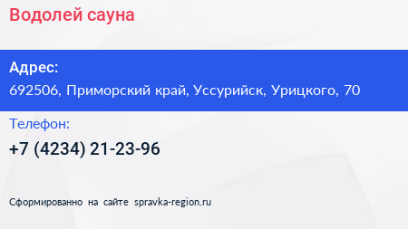 Водолей, сауна по адресу 692506, Приморский край, Уссурийск, Урицкого, 70 в дальнейшем Организация, размещена в следующих категориях: