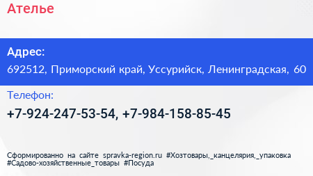 Ателье по адресу 692512, Приморский край, Уссурийск, Ленинградская, 60 в дальнейшем Организация, размещена в следующих категориях: