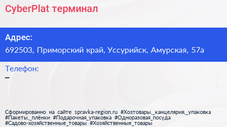 CyberPlat, терминал по адресу 692503, Приморский край, Уссурийск, Амурская, 57а в дальнейшем Организация, размещена в следующих категориях: