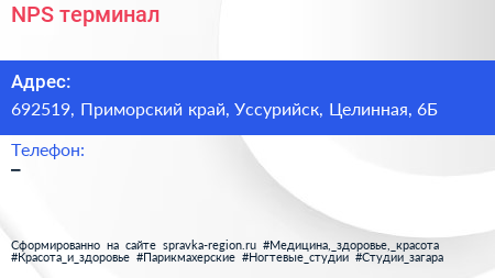 NPS, терминал по адресу 692519, Приморский край, Уссурийск, Целинная, 6Б в дальнейшем Организация, размещена в следующих категориях: