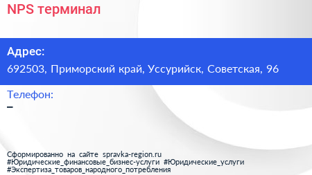 NPS, терминал по адресу 692503, Приморский край, Уссурийск, Советская, 96 в дальнейшем Организация, размещена в следующих категориях: